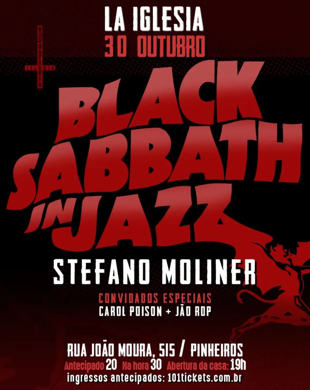 O Black Sabbath In Jazz está de volta na Iglesia com @stefanomoliner e convidados mais que especiais @p00ison e @jaoratos 🔥
