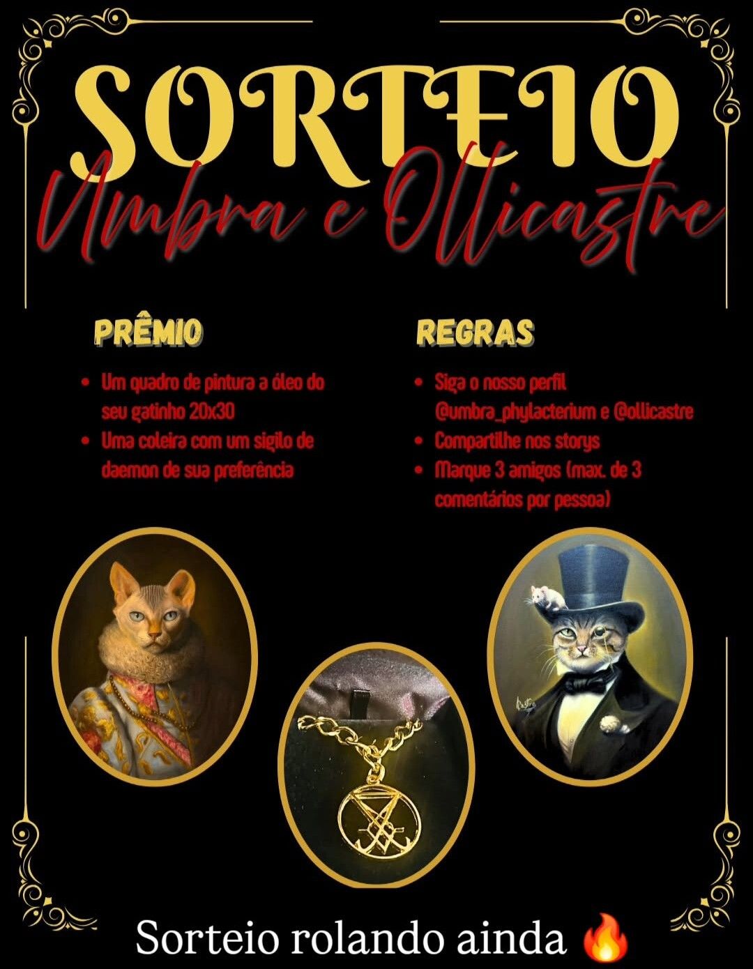 Estamos sorteando um quadro de pintura a óleo do seu gatinho, e também uma coleira banhada a ouro com o sigilo do daemon de sua preferência!