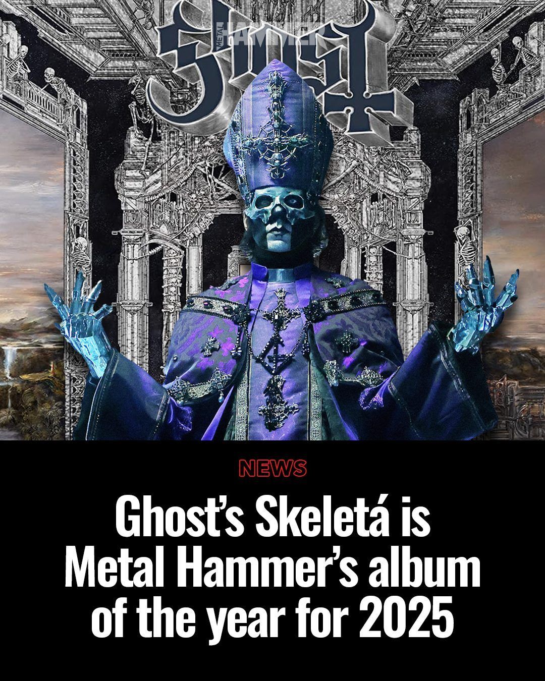 O ano de 2025 consolidou o Ghost não apenas como uma banda, mas como uma instituição do entretenimento teatral e musical. O veredito final da prestigiosa revista Metal Hammer, em votação realizada por sua equipe de especialistas e colaboradores, não deixou dúvidas: "Skeletá" foi coroado o Álbum do Ano. A vitória é o ápice de um ciclo avassalador que viu o grupo sueco dominar as paradas globais, atingir o topo da Billboard 200 e redefinir o conceito de espetáculo em arenas.