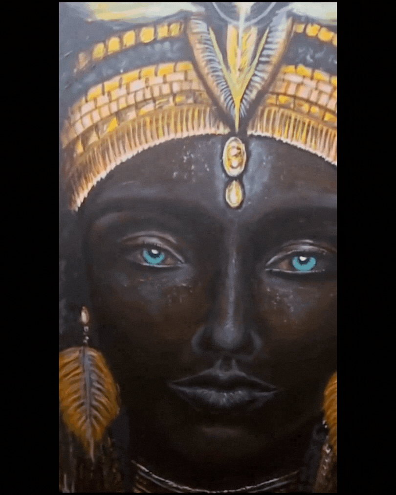 Enquanto pintava este quadro, senti as danças antigas pulsarem em mim, ouvi cantos que não são deste tempo, percebi o Fogo que atravessou gerações chegar às minhas mãos.