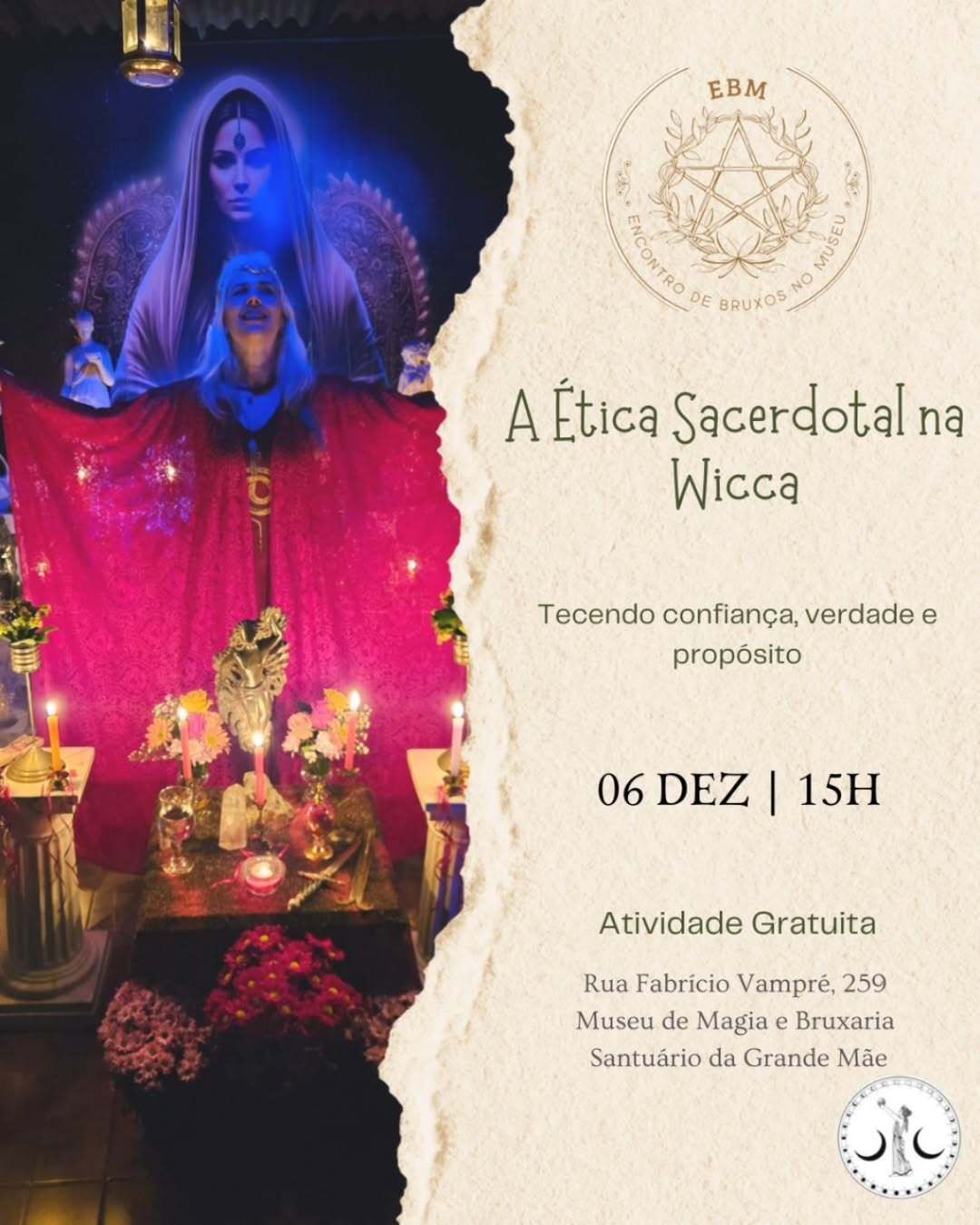 No dia 6 de dezembro, às 15h, estaremos no Santuário da Grande Mãe para um encontro especial sobre Ética Devocional, conduzido pela Alta Sacerdotisa Claudhia Issa, parte da organização do EBM.